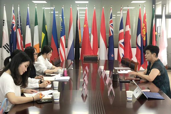 国际教育学院熊英院长对我校国际化工作做了总体介绍,主要探讨了近年来我校中外合作办学,特别是赴境外办学的动因、进展、困难和成效,调研组对我校教育国际化的思路和成效予以高度评价。熊英院长、研究中心代表和我校马来西亚汉语中心教师代表分别就高职中外合作办学、境外办学过程中语言培训、课程对接互认、师资能力建设等实际运行情况与课题组进行了深入交流。