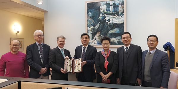 朱爱胜书记访问阿斯隆理工学院,向校长Ciarán Ó Catháin赠送礼物