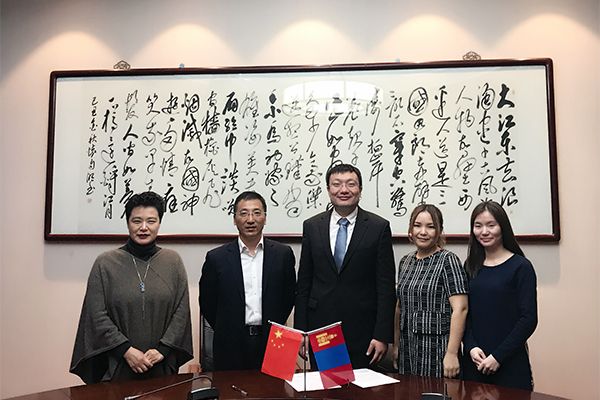 龚方红校长对访问团的来访表示热烈欢迎,简要介绍了我校的办学优势,近几年教育国际化的新发展与新成果,希望通过访问进一步加深双方了解。DASHDORJ YAGAAN校长对我校的热情接待表示感谢,并表达了与我校开展合作的强烈意愿,尽快启动高校教师培训与留学生跨国分段联合培养等国际教育项目。随后,国际教育学院熊英院长对我校国际教育项目进行了详细介绍,并与访问团深入洽谈,访问团的代表们对双方合作充满信心。最后,龚方红校长与DASHDORJ YAGAAN校长签署了两校合作备忘录,双方将在跨境联合培养、短期学生交流及教师培训等方面开展合作,首批项目将在软件技术、移动应用开发和工商管理等三个专业领域开展合作。