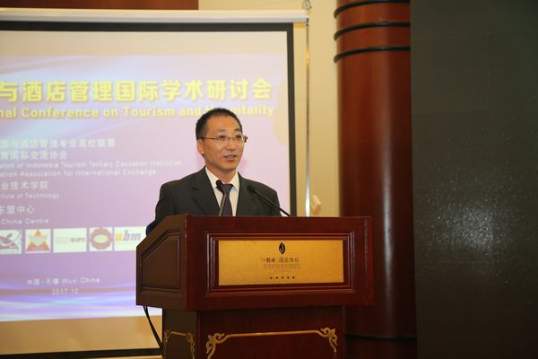 朱爱胜书记在致辞中对与会嘉宾领导的到来表示欢迎,并介绍了我校概况与近年来获取成绩。他指出,此次会议聚焦当前旅游与酒店管理发展的重点领域、前沿区域进行集中探讨和深入交流,将促进旅游与酒店管理高等教育研究,对进一步增强国际高等教育服务经济社会发展能力具有十分重要的意义。