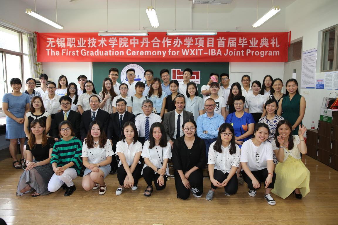 2016年7月8日,我校首届中丹合作办学项目毕业典礼隆重举行。丹麦院校项目负责人Mikael先生、丹麦南部大学教师Svend先生、无锡职业技术学院华坚副校长、冯渊副校长、管理学院及国际教育学院相关教师出席本次毕业典礼。