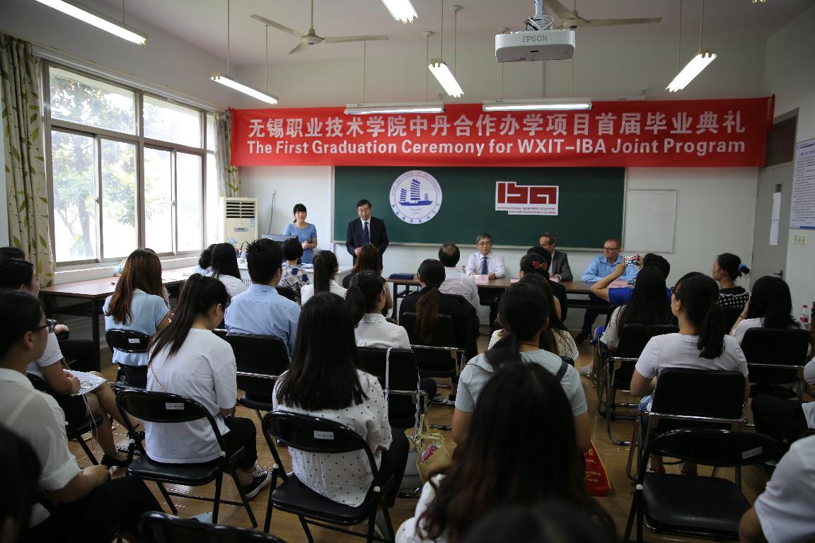本次毕业典礼由无锡职业技术学院冯渊副校长主持,华坚副校长和丹麦科灵商业学院项目负责人Mikael先生分别致辞。副校长华坚向毕业生们表示祝贺并提出希望,希望同学们毕业后不光要努力完成职业上的各个目标,还要学习西方国家的教育理念,学会经营一个健康快乐的人生。