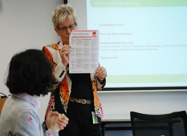 为提高学习效果,学习团赴澳前两次召开专题会议,学习外事纪律,研讨学习主题,在自学基础上每人结合岗位工作实际和关注的问题提出3-5个学习主题。澳方为我校学习团安排了丰富的学习内容,TAFE学院分管教学的Peter院长作了昆士兰职业技术教育改革情况和学校介绍,国际合作交流处Philip处长介绍了学校国际合作与交流的有关情况,Grace老师详细向学员们阐述了了澳洲职业教育体系、学徒制与培训,Craig老师重点介绍了TAFE教育与本科教育的衔接,Angela老师重点介绍了培训包和教学方法。IT学院院长Carla女士专门介绍了IT学院情况、与堪培拉大学合作办学情况,并具体介绍了“计算机网络”专业的培训包及课程设置。教学管理部门主管Brendon先生介绍了学院教学管理情况,并就老师们关心的问题进行了解答与说明。我校成员还参观了布里斯班Southbank TAFE、TAFE Gold Coast、TQGC Coomera Campus和Southport Campus等几个校区,实地考察了创意设计、汽车维修、旅游、护理、美容美发、计算机、商科等专业的现场教学环境、教学场所、实训室、图书馆等,并就各自关注的问题与相关教师进行了交流。通过参观、交流,学员们深刻感受到了TAFE学院在职业技能教育培训方面的先进理念、先进做法和优越的软、硬件条件。我校教师认真学习的态度和深入探究的精神也受到澳方的高度评价。