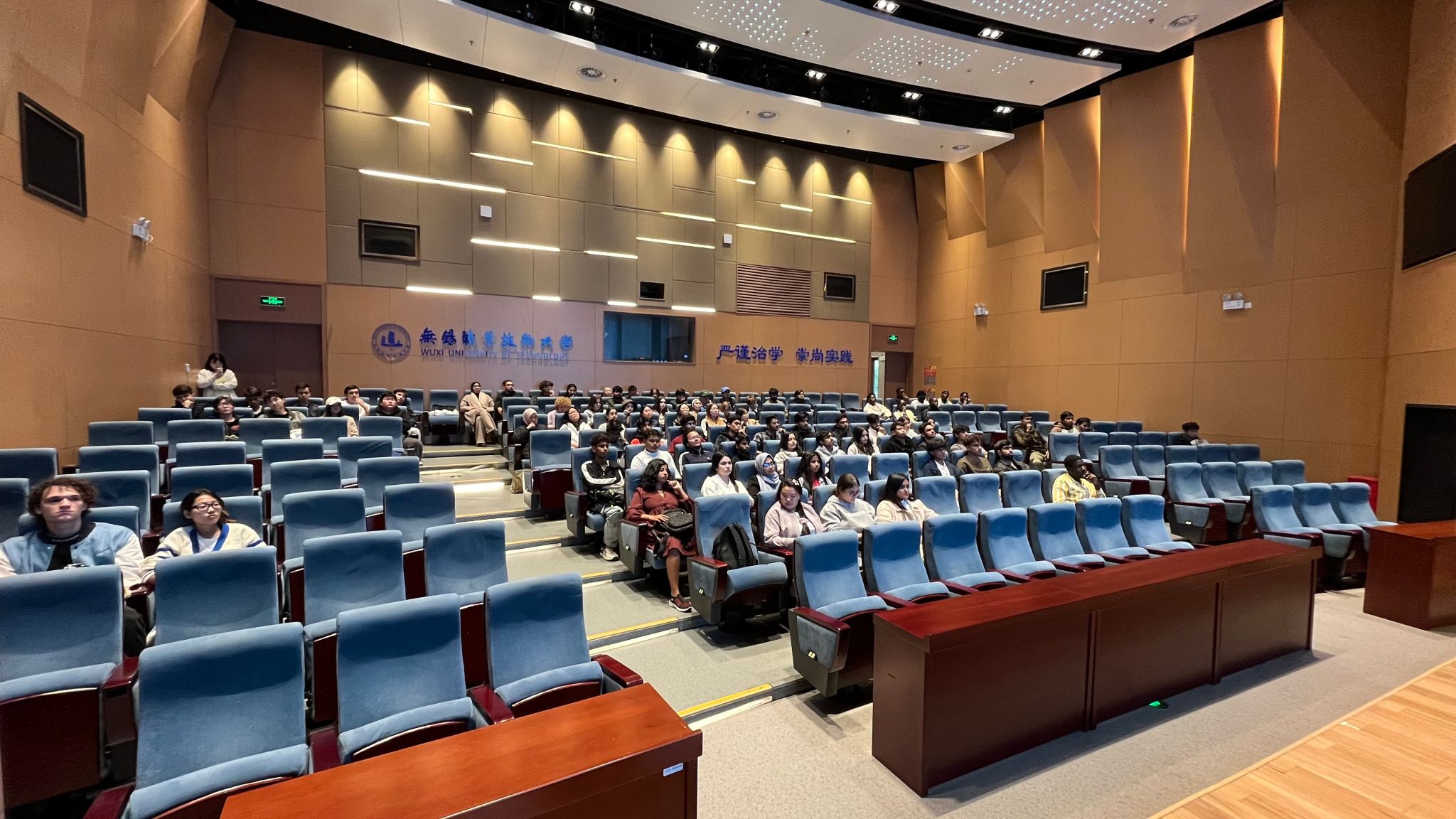 2025年11月10日下午,无锡市公安局出入境管理处张莉警官应邀莅临学校,为全体来华留学生带来了一场主题鲜明、内容实用的出入境法规专题讲座。本次讲座面向来自亚洲、非洲、欧洲共18个国家的136名留学生,旨在提升留学生们对在华法律法规的认知,保障其在中国学习期间合法、顺利地居留与生活。
