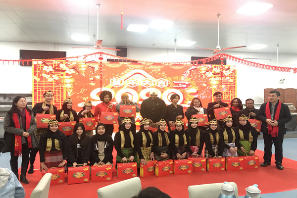 晚上,在校留学生们还举行了包饺子迎新年活动。校领导朱爱胜书记、杨雪琴副校长率国际教育学院、相关部门与二级学院的负责人慰问了在校留学生。朱爱胜书记对同学们表达了新春的祝福,鼓励大家通过亲历中国传统节日,切身感受和认识中国文化,度过一个“健康、有益、文化”的中国年,祝愿学生们学业进步、健康成长。杨雪琴副校长希望留学生们要利用假期做好学习规划,做好个人卫生防护措施,为新学期做好准备。留学生代表向领导老师们回赠了亲手制作的特色纪念品,感谢校领导的关怀和祝福。