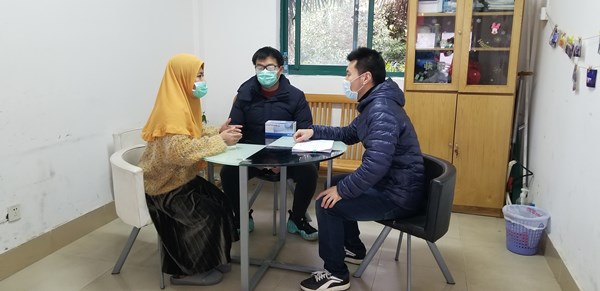 在疫情防控形势愈加严峻、跨市交通不便的情况下,有部分留学生提出自愿返回生源国,老师们克服重重困难,帮助同学们联系使领馆、购买机票、包车送往上海、常州机场,确保留学生平安健康回国。针对在校外的留学生,老师们“人盯人”、“一对一”,每天专人负责联系,并更新学生动态信息库,确保全面了解所有学生的情况,保障学生安全,实现了疫情期间留学生情况“零报告”。老师们还制作中英文微信公众号推文,告诉留学生学校安排的最新的进展,帮助他们了解中国抗疫战线的真实感人故事,在世界各地一起为中国为武汉加油!此外,校医院对在校留学生的防护提供了专业的指导和帮助。党院办、保卫处、后勤处、学生处等众多职能部门在工作协调、防疫宣传、学生管理等各方面给与了大力支持和帮助,保障了在校留学生和返校留学生疫情防控工作的顺利开展。学校各部门网格管理、同心协力上牢“安全锁”。