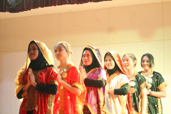 伴随着热烈的掌声,晚会在一段动感的开场舞中拉开序幕。首先,由来自印度尼西亚的留学生向在场学生详细介绍了一些本土特色和风土人情,从印尼咖喱蟹、巴东牛肉、沙爹爪哇面等美食再到海神庙、神鹰广场、金巴兰海滩等著名景点,场下观众纷纷投来艳羡的目光。随后在闪耀的灯光下,来自马来西亚的留学生在音乐的伴奏下向在场观众表演了极具地方特色的舞蹈,彰显了当地的民俗特点和文化魅力。紧接着剧场上空响起了一曲饱含深情的印尼漫歌,虽是清唱,但在五位留学生的吉他弹唱中却多了那份歌者对祖国爱的诠释和对锡职生活的憧憬和向往,同学们纷纷挥动手中的荧光棒,一度将晚会现场的氛围推向了高潮。随后,国际部学生表演了中国武术和咏春拳,赢得了台下观众热烈的掌声和阵阵欢呼声。在现场游戏环节中,中外学生搭档“你画我猜”,让中外学生有了近距离交流的机会。最后,一场由中外学生倾情演绎的精彩晚会在全场师生的大合影和热烈欢呼中圆满落幕。留学生们纷纷表示能够受邀参加此次交流晚会感到十分荣幸,期待与中国的友好交流能在我们这一代青年人的共同努力下更上一层楼。