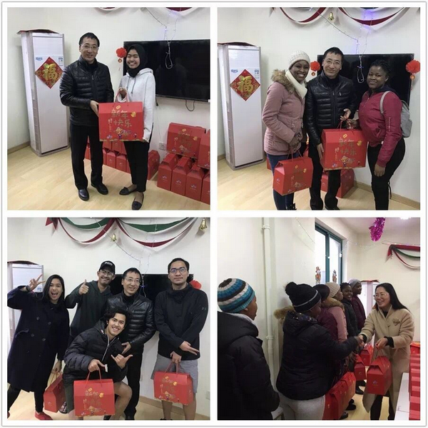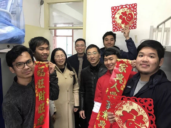 锦戌报捷去,金亥送春来。2019年1月31日,校领导龚方红、杨雪琴带领党院办、国际教育学院部门负责人,看望慰问了寒假在校留学生,送去了新春祝福,与留学生们亲切互动,并发放了春节慰问礼盒。
